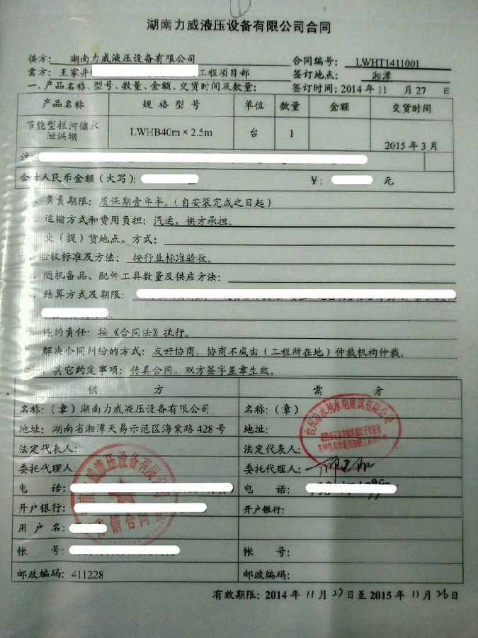 湖南力威液壓攔河壩中標(biāo)