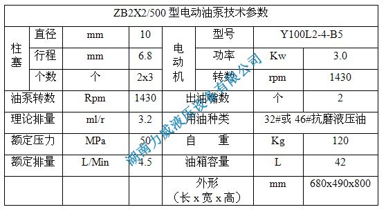 ZB2X2/500型電動油泵